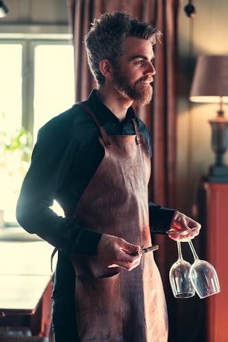 Forkle er enkelt å tørke av dersom du søler på de. Vi anbefaler en klut og grønnsåpevann på ca. 40C. Forkle kan vaskes også for hånd i såpevann ved 40C. Etter vask må forkle tørke langsomt og fettes inn med lærfett. Dersom forkleet blir gjennombløt bør det også tørkes og fettes inn for å beholde smidigheten. Dersom forkleet er bløtt bør du unngå at det kommer i kontakt med jern, fordi garvingen (barken) i skinnet vil reagere med jernet og lage svarte flekker på skinnet.
