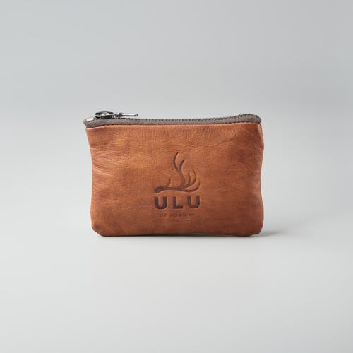 Lommeboken er laget av reinskinn garvet med granbark og seljebark. Dette gjør materialet holdbart og vanntett.